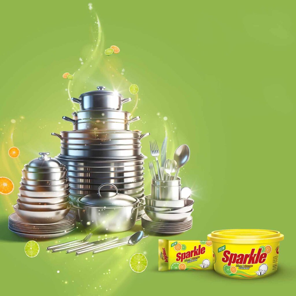 Sparkle, as a brand, now offers a range of products in the form of Dishwasher cakes (bars and tubs), Dishwasher liquid, and Dishwasher aids (scrub pads and steel wool).